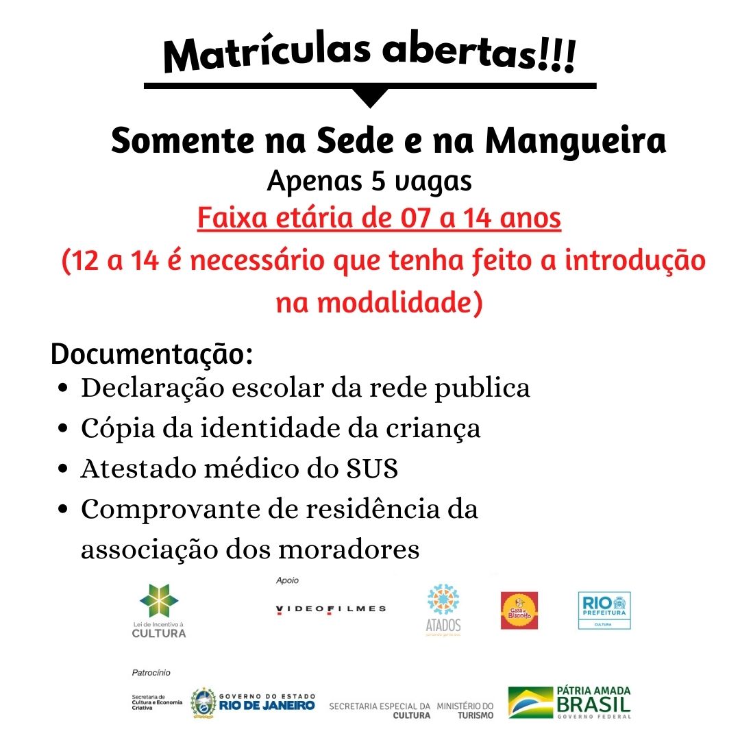 Matrículas abertas para comunidade da Mangueira e Sede (centro)!