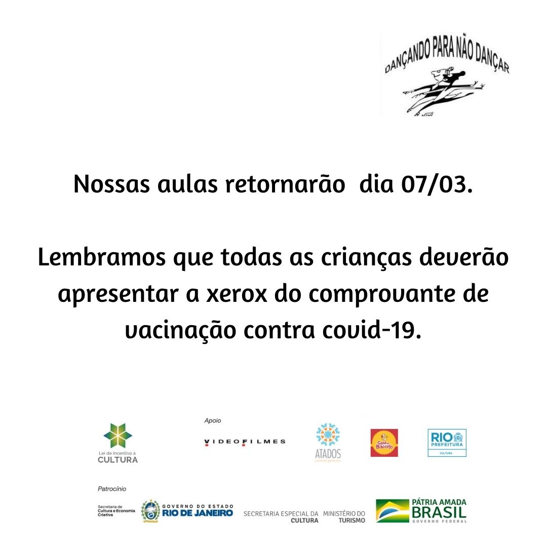Lembramos que todas as crianças deverão apresentar a xerox do comprovante de vacinação contra covid-19.