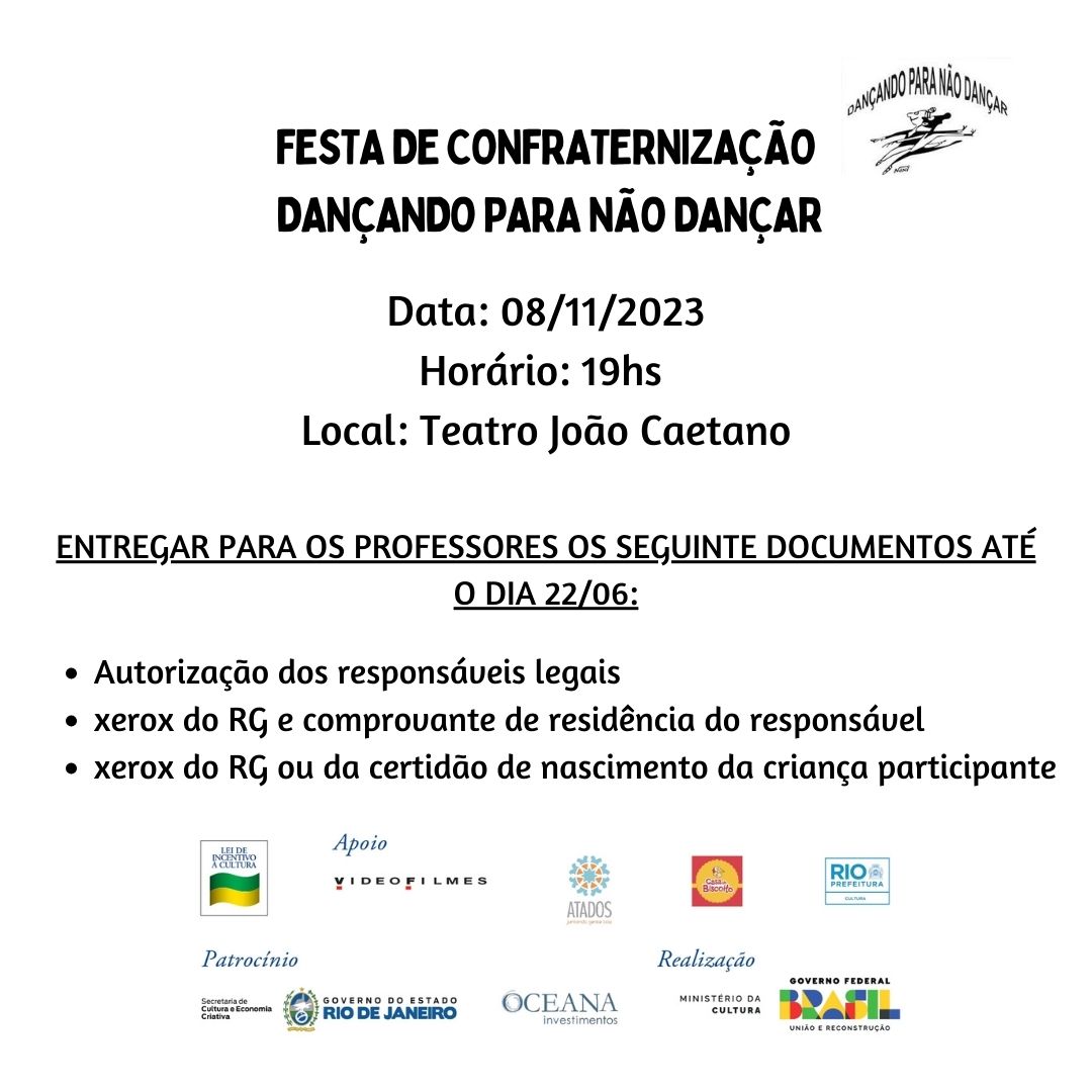 A nossa festa de confraternização será no dia 08/11/2023, às 19:00, no Teatro João Caetano.